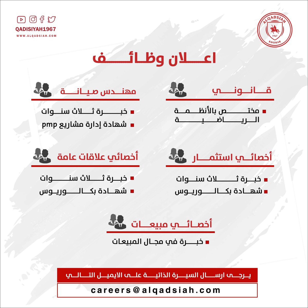 وظائف في نادي القادسية السعودي للجنسين لعدد من المهن 2021م