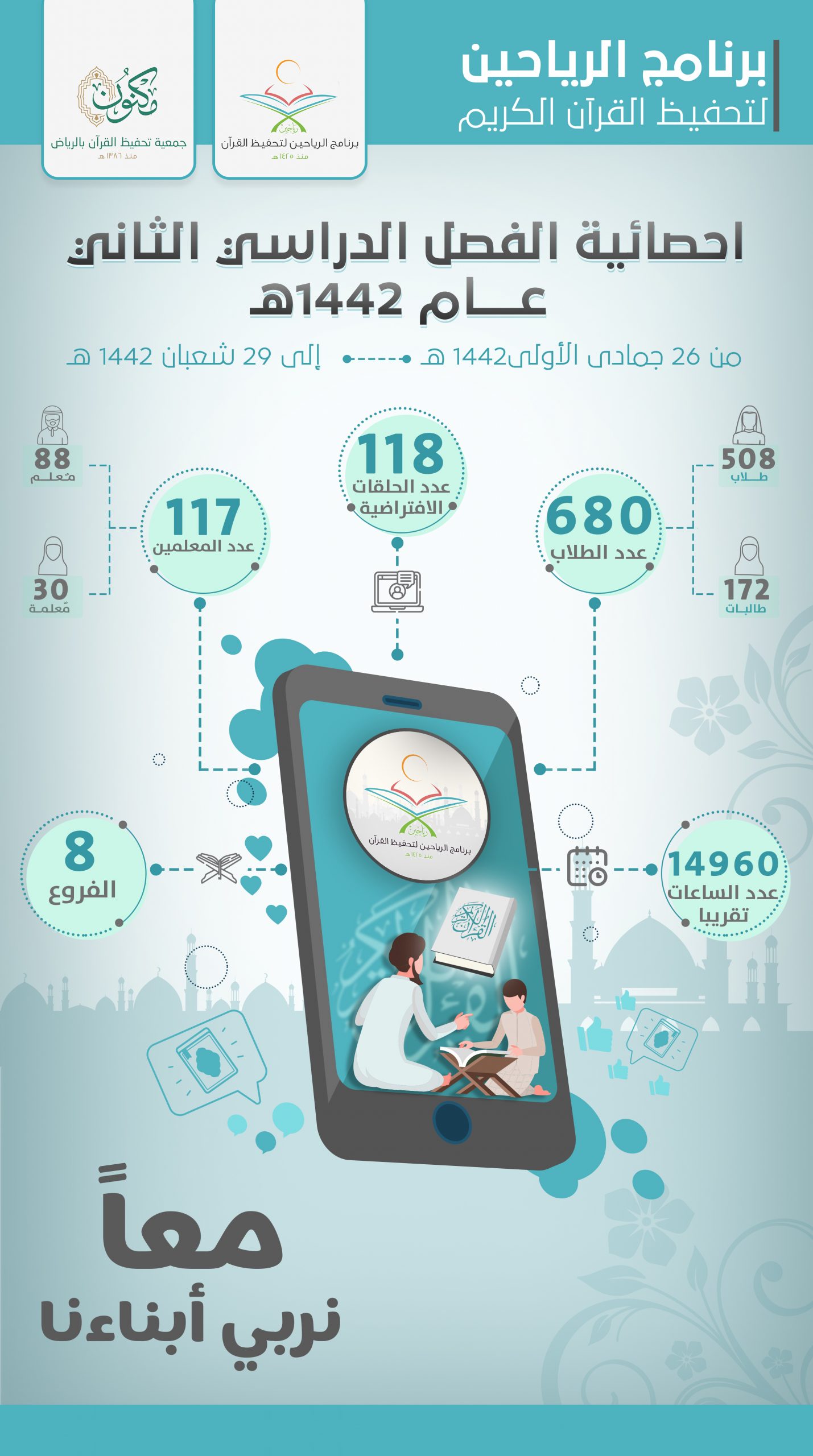 ويضم البرنامج لهذا العام 680 طالبا وطالبة يتلقون التعليم عبر الاتصال “عن بعد” وهي تجربة جديدة خاضها البرنامج من العام الماضي لقيت نجاحا كبيرا، وتكمن صعوبتها في صغر سن الطلاب، وخوضهم لتجربة جديدة لم يألفوها، مما زاد من حجم الجهود المبذولة حتى استطاع البرنامج أن يستمر في تحقيق نجاحات كبيرة توجت العام الماضي بـ37 خاتما من البنين، و32 خاتما وخاتمة منهم 5 خاتمات كأول دفعة من الطالبات تتخرج في البرنامج.