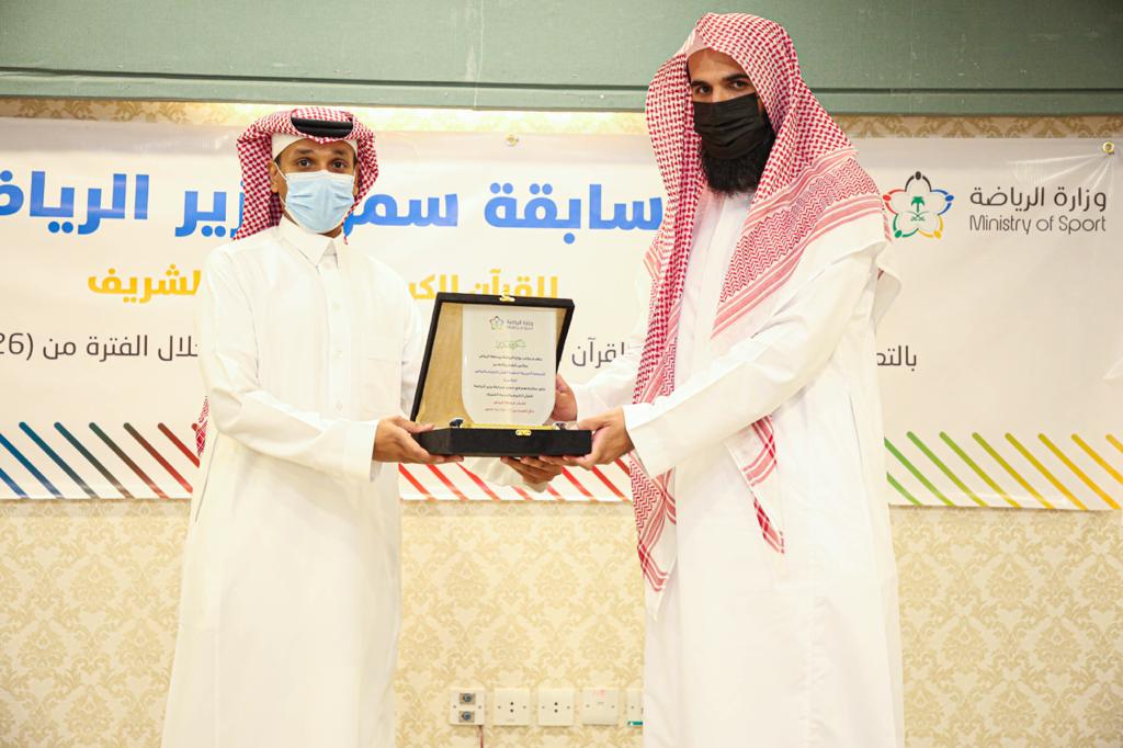 وفي ختام التصفيات كرم الأستاذ مصعب المطيري ممثل فرع مكتب وزارة الرياضة بالرياض الفائزين وقدم درعا تكريميا للجمعية.