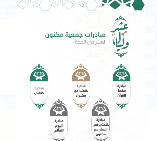 تزامنا مع حلول العشر من ذي الحجة، أطلقت جمعية تحفيظ القرآن الكريم بالرياض “مكنون” مبادرة قرآنية بعنوان: “وليال عشر”، تهدف إلى استغلال العشر من ذي الحجة والانشغال بالقرآن الكريم وتسهيل تلاوته ومراجعته وختمه خلال الأيام الفاضلة، بمشاركة مجموعة من المشايخ المتخصصين الذين يتولون عملية متابعة المشاركين وتصحيح تلاوتهم والتسميع لهم، حيث يستطيع المشارك من إتمام قراءة القرآن كاملا خلال الأيام العشر، وتشتمل على خمس مبادرات قرآنية هي: