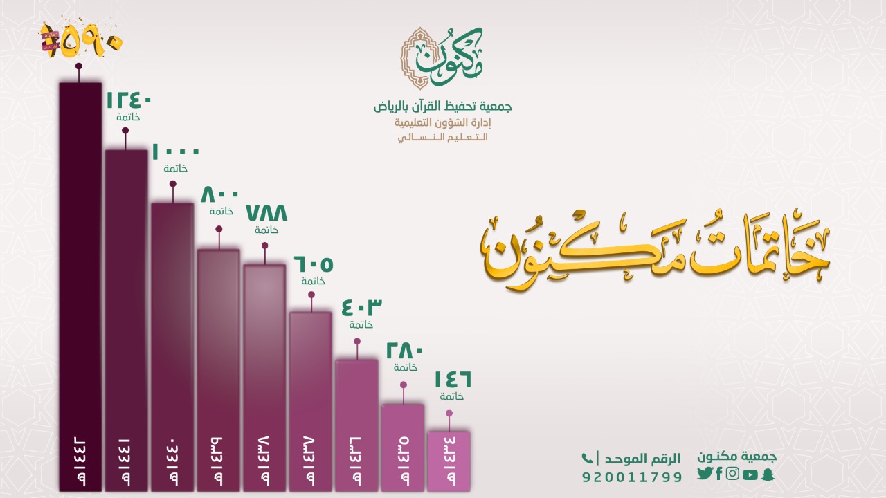 أطلقت جمعية تحفيظ القرآن الكريم بالرياض “مكنون” الأحد الماضي حملة خاتمات مكنون 1442هـ على مواقع التواصل الاجتماعي.
