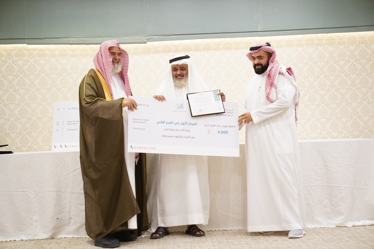 جدير بالإشارة إلى أن المتسابقين تنافسوا في ثلاثة مسارات: مسار سورتي البقرة وآل عمران، ومسار سورة الإسراء والكهف ومريم وطه، ومسار جزئي تبارك عم. ورصدت الجمعية جوائز مالية تقدر بأكثر من 30 ألف ريال.