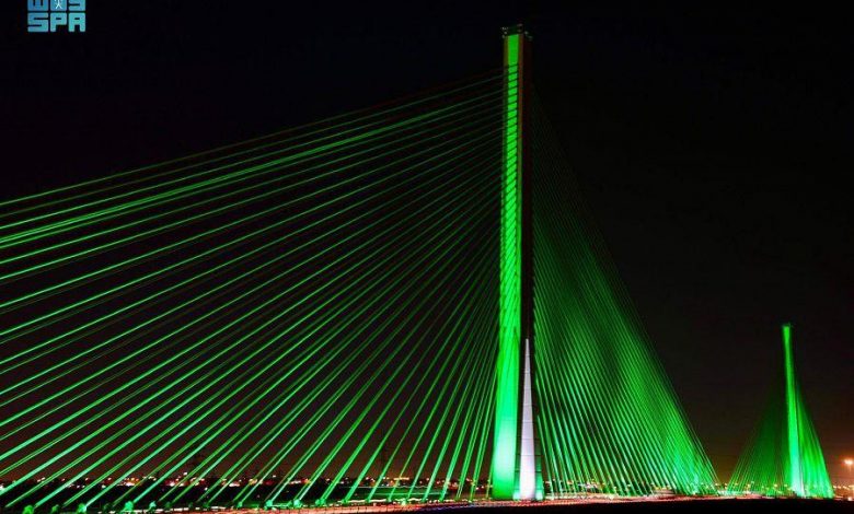 قامت وزارة النقل والخدمات اللوجستية، بإضاءة الجسر المعلق في مدينة الرياض، بألوان علم المملكة، تزامناً مع الاحتفالات باليوم الوطني الـ91.
