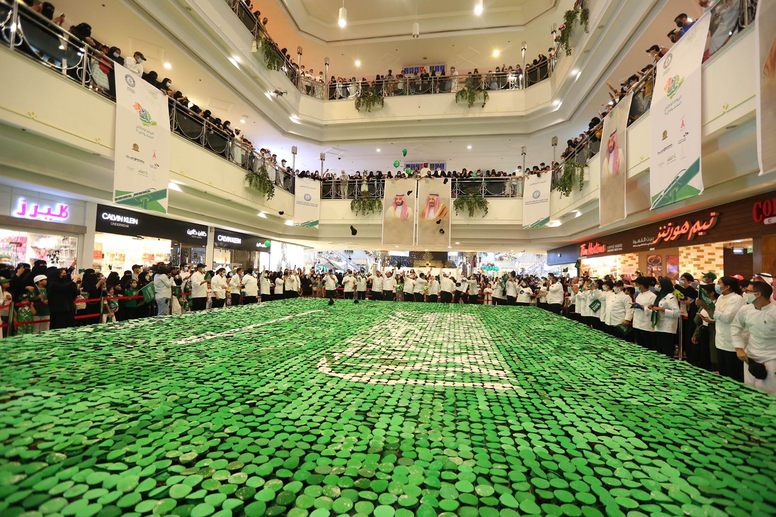 نجحت المنطقة الشرقية في تحقيق رقم عالمي جديد في غينيس للأرقام القياسية ليسجل بأسم المملكة العربية السعودية احتفاء باليوم الوطني الواحد والتسعين ، من خلال تشكيل أكبر علم بمنتجات غذائية محلية “كب كيك” على مستوى العالم ، وجاءت هذه المبادرة في مجمع الراشد التجاري بالخبر كإحدى مبادرات هيئة تطوير المنطقة الشرقية بتنفيذ الأكاديمية السعودية لفن الطهي “زادك” وتعاون عدد من الجهات بالقطاعين الحكومي والخاص والقطاع الثالث .