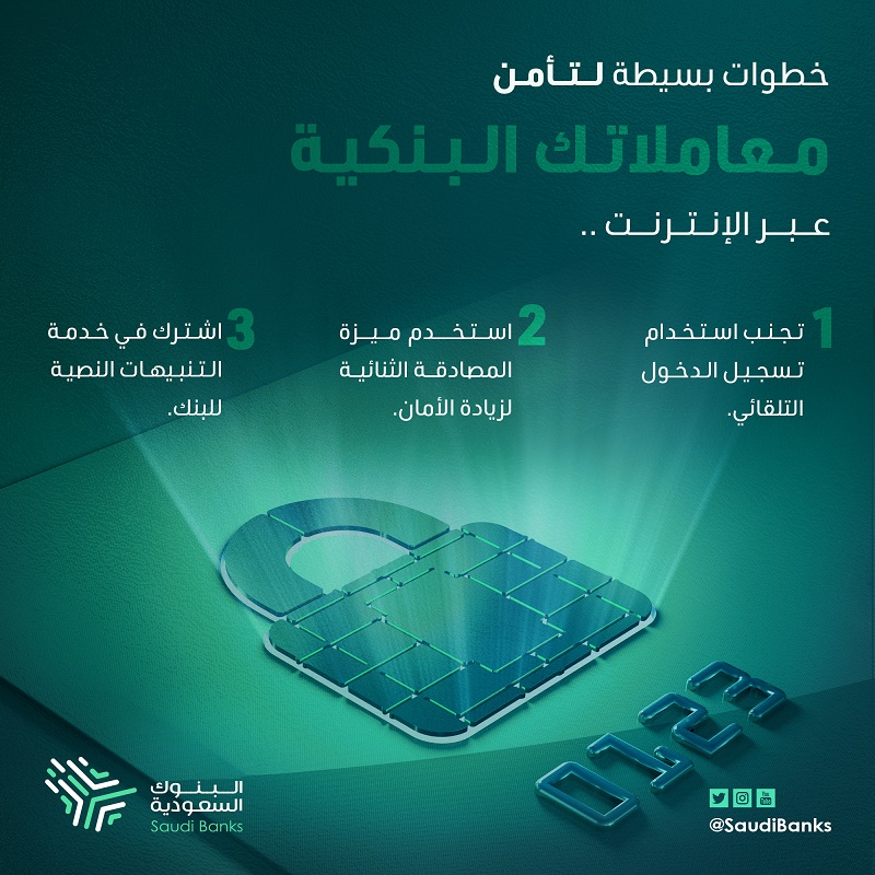 أوضحت اللجنة الإعلام والتوعية المصرفية بالبنوك السعودية، أن هناك 3 خطوات من شأنها تأمين حسابات العملاء ومعاملاتهم البنكية.