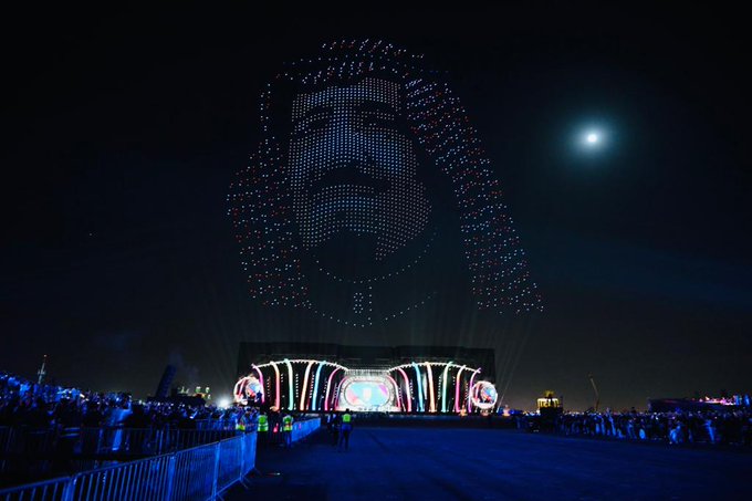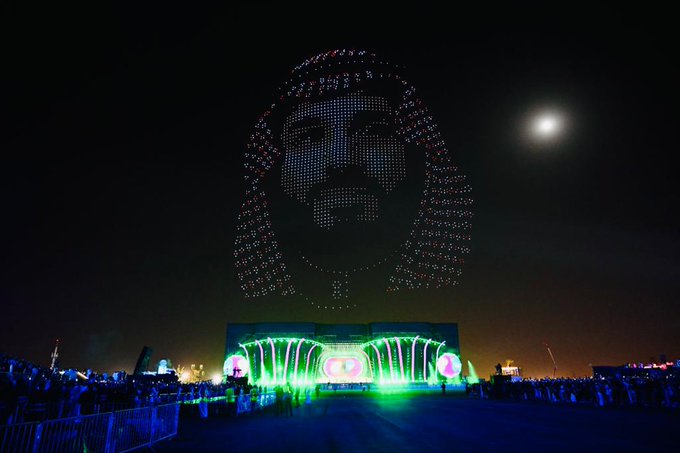 وقال معاليه : “الموسم الأول كان شعارنا “تخيّل”، والموسم الثاني شعارنا “تخيّل أكثر”، في ظل دعم واهتمام القيادة الملهمة ليكون الطموح بلا حدود ويحقّق الأحلام. وسجّل الموسم في أول أيامه نجاحًا أبهر العالم من خلال العروض والأزياء والموسيقى، التي شكلت أيقونات لعبور الترفيه السعودي إلى الكرنفالات العالمية،إذْ تضمّن عرضًا لأكثر من 2760 طائرة درون، شملت عروضها صورًا لخادم الحرمين الشريفين وسمو ولي عهده الأمين ، كما رحَّبت بالحضور بعدد من اللغات العالمية، إضافة إلى عرضها شعارات مناطق وفعاليات موسم الرياض هذا العام.