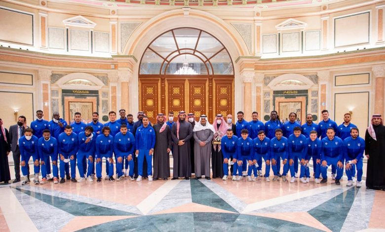 استقبل صاحب السمو الملكي الأمير محمد بن سلمان بن عبدالعزيز ولي العهد نائب رئيس مجلس الوزراء وزير الدفاع ، صاحب السمو الملكي الأمير عبدالعزيز بن تركي الفيصل وزير الرياضة، ورئيس الاتحاد السعودي لكرة القدم، ورئيس وأعضاء مجلس إدارة نادي الهلال، والجهازين الفني والإداري، ولاعبي الفريق لكرة القدم، بمناسبة تحقيقهم بطولة دوري أبطال آسيا 2021 والتأهل لكأس العالم القادم للأندية.