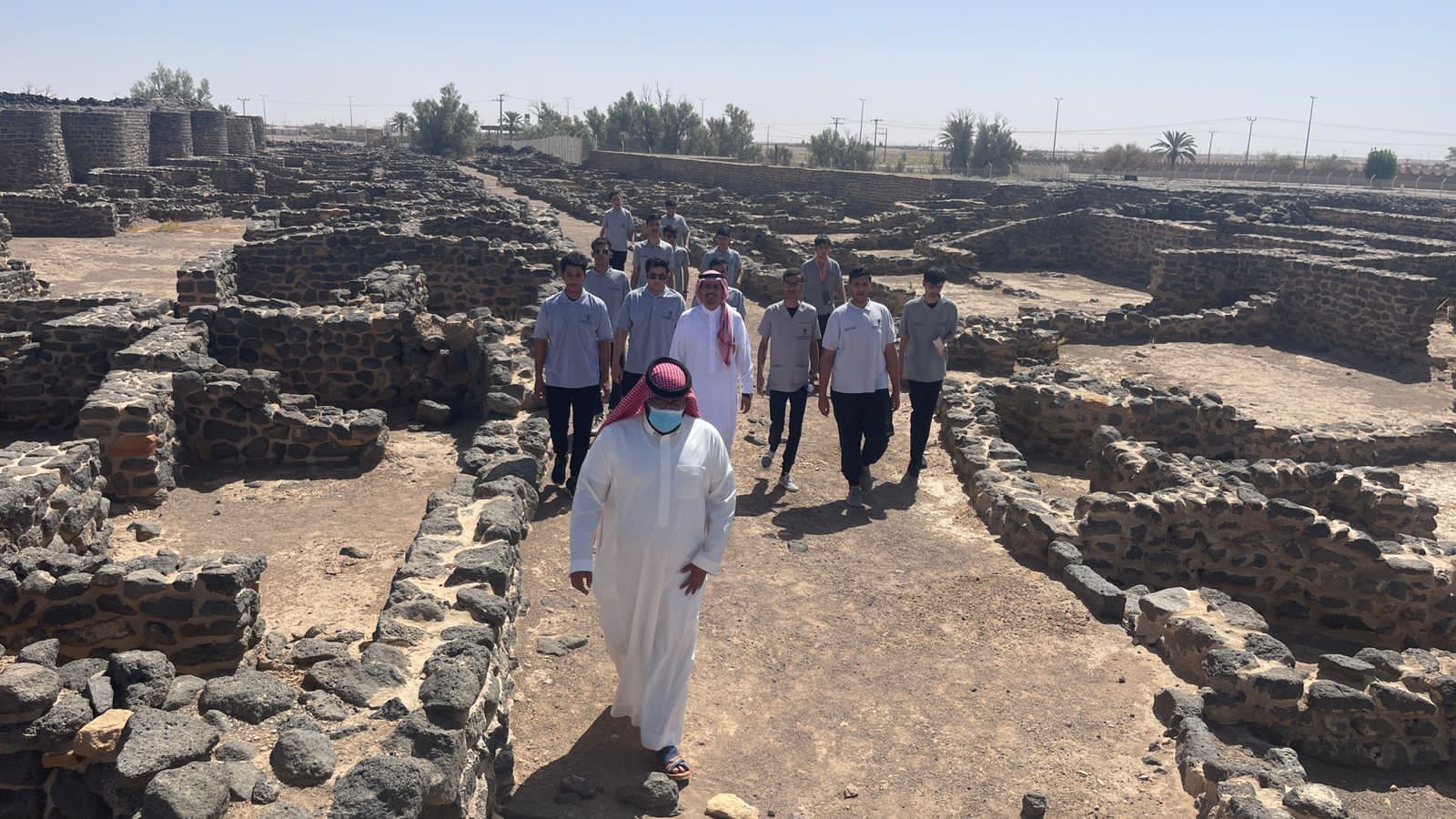 وكان في استقبالهم السيد عايد الحربي مدير مكتب هيئة التراث التابع لوزارة الثقافة والمرشد السياحي مشعل الشمري، كما رافق المتدربين عضو هيئةالتدريب علي اليوسف من قسم السياحة والارشاد السياحي في الكلية التقنية بحائل.