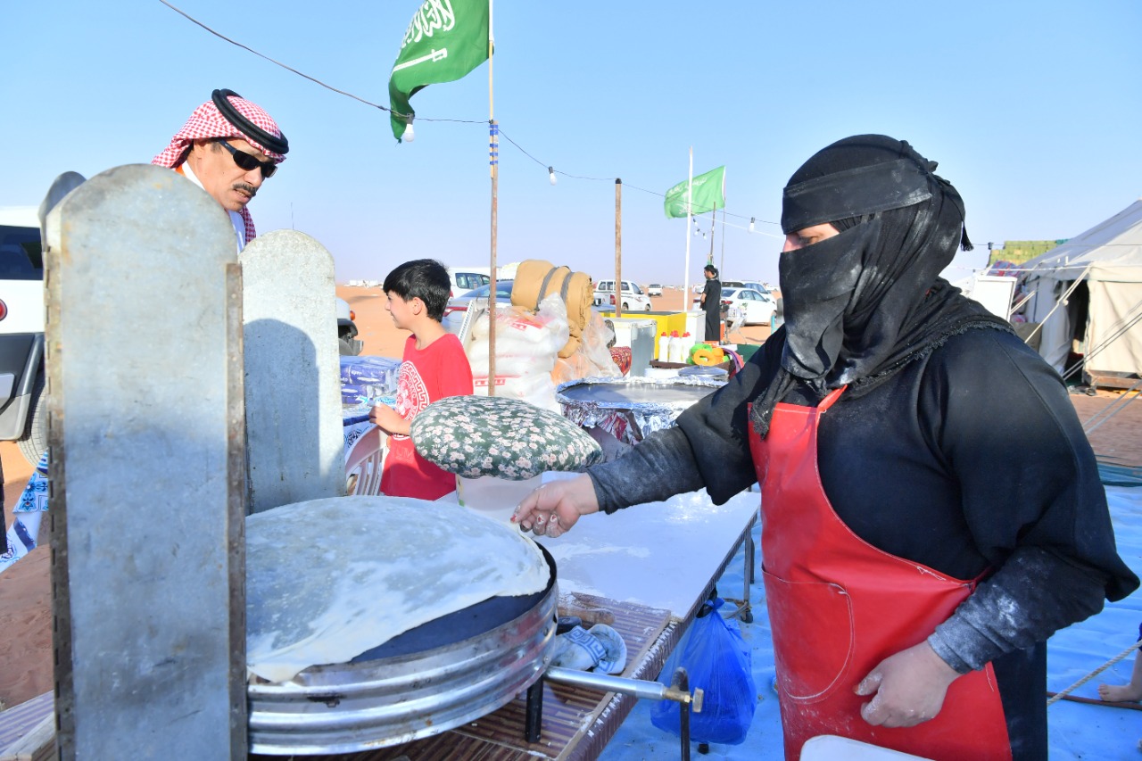 وبين الضبعان بأن المهرجان يضم ثلاث مناطق المنطقة الأول خاصة للأسر المنتجة وفيها عرض جميع المنتجات الخاصة بهم والخدماتكذلك عرض الحرفيين أما المنطقة الثانية تضم خيمة الفعاليات وتضم الجمعيات واللجان والجهات الحكومية المشاركة بالنسبة للمنطقةالأخيرة هي منطقة ملاك الإبل والشيوخ ما الى ذلك واليوم يشاركنا اكثر ١٥٠ منصة بيع خاصه بالأسر المنتجة والمحلات الصغيرةوالمنشآت متناهية الصغر وتعد مشاركتنا الأولى بالهيئة مع امارة منطقة حائل وبأذن الله يعكس الواقع الايجابي الذي نطمح من خلالهتحقيق جميع النتائج المرجوة .