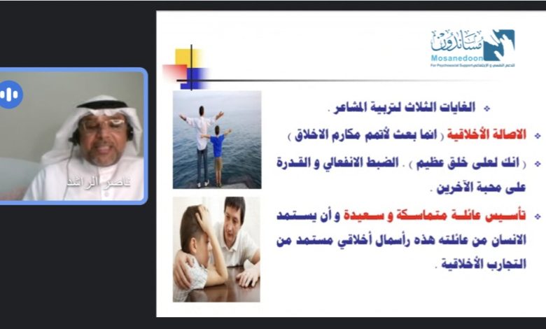 ضمن مبادرة: كلنا مساندون في جمعية مساندون للدعم النفسي والاجتماعي قدم الأخصائي النفسي أ.ناصر الراشد عضو (مساندون) محاضرة تثقيفية بعنوان تنمية مشاعر الأبناء وتوازن المشاعر.