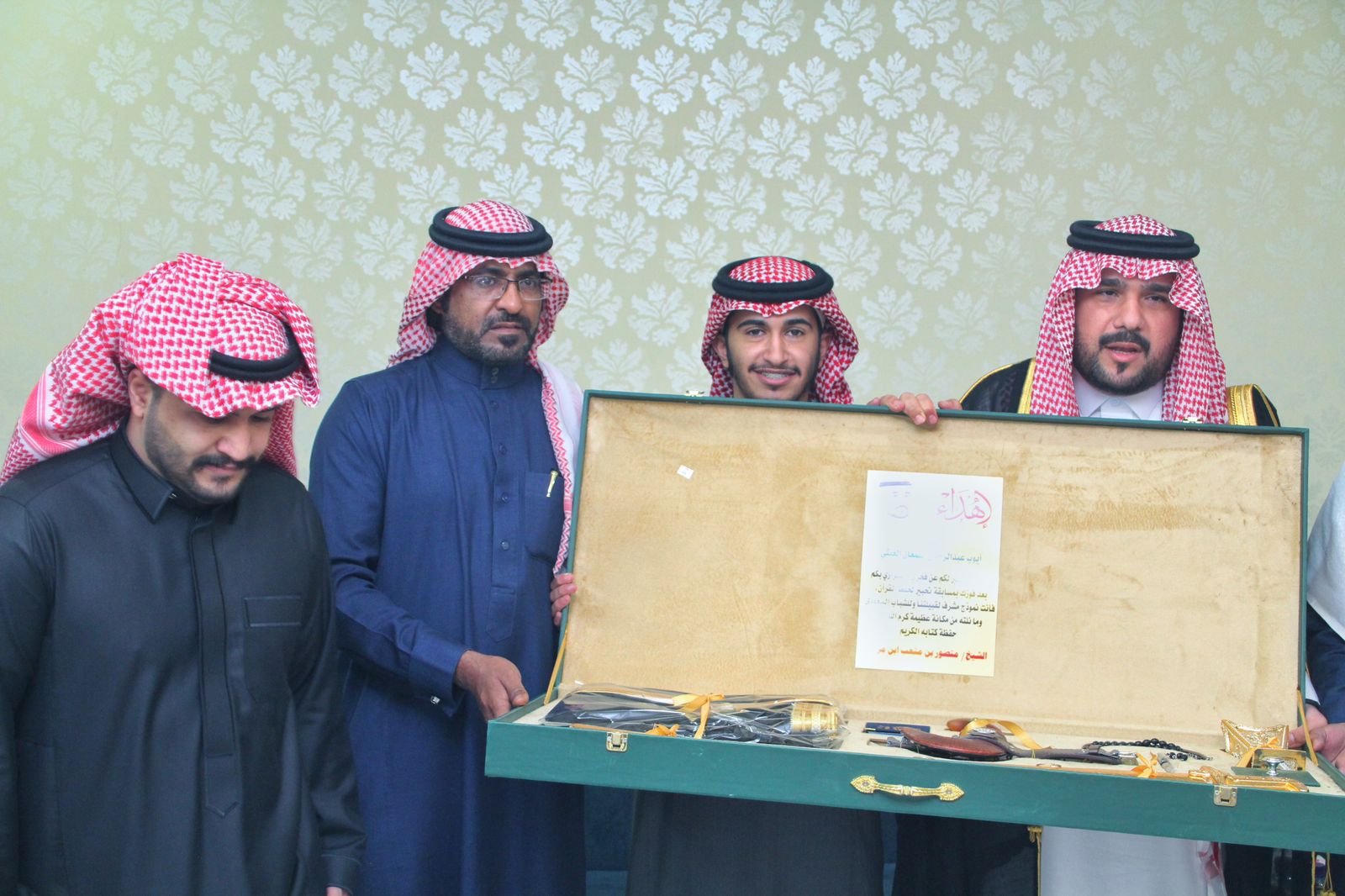 كما كرّم الغيثي، الطالب أيوب بن عبدالرحمن القمعان الغيثي، بعد فوزه بمسابقة تحبير لحفظ القرآن، مشيراً إلى أن الابن الفائز بمثل هذه المسابقة الدينية يعد نموذج مشرف للشباب السعودي، وما ناله من مكانة عظيمة أختص الله بها حفظة كتابه الكريم .