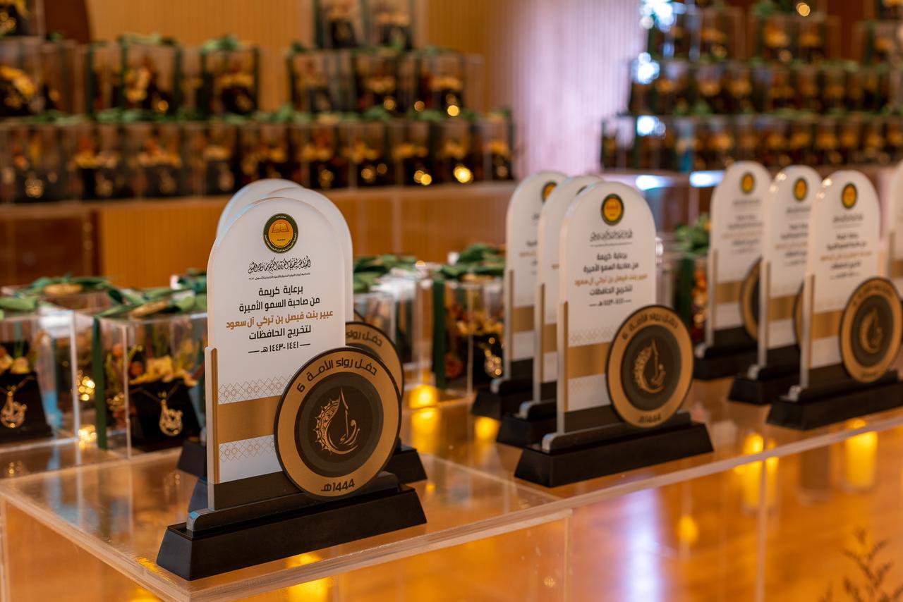 ثمّ اختتم حفل «رواء الأمة السادس » بعنوان إنجاز بتكريم سمو الأميرة الحافظات لكتاب الله والمدارس المتصدرة في تخريج الحافظات ، ابتدأته بكلمة من سموّها والترحيب بالحضور وتأكيد دعمها للقرآن وأهله وأنّهم من الخيرة وأمانيها بأن تكون من حفظة كتاب الله ، بالإضافة إلى تكريم الرعاة الداعمين للحفل، و أصحاب العطاء في دعم برامج الجمعية