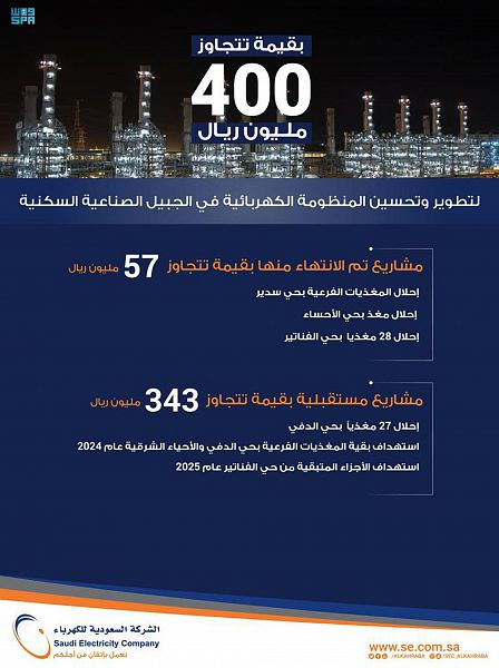أكثر من 400 مليون ريال لتطوير وتحسين المنظومة الكهربائية في أحياء الجبيل الصناعية السكنية