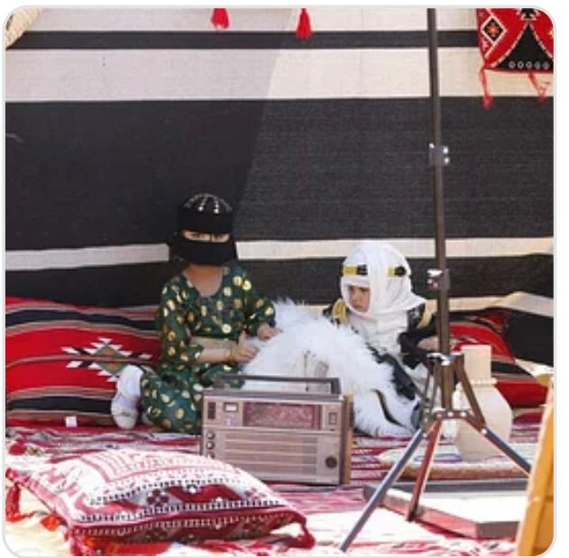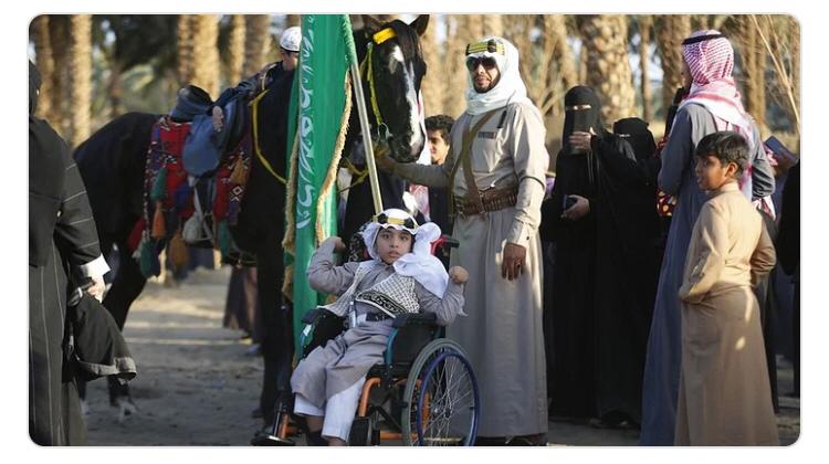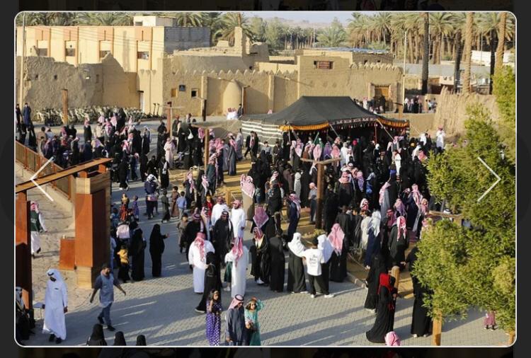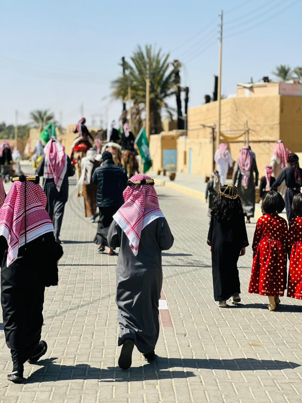 وقد استوحيت أزياء الزوار من التراث السعودي بمناسبة يوم التأسيس.