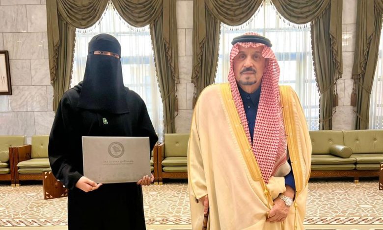 أمير منطقة الرياض يكرم الطالبة آمان البطيان