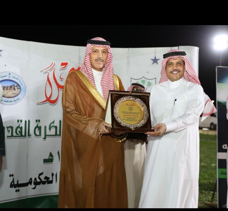 وكرم محافظ تيماء في نهاية الدوري الفرق الفائزة والداعمين للبطولة.