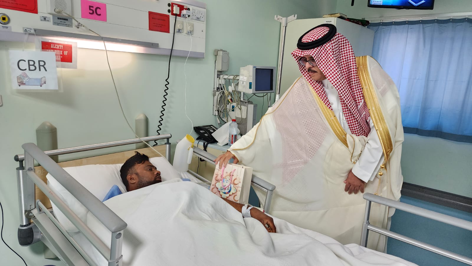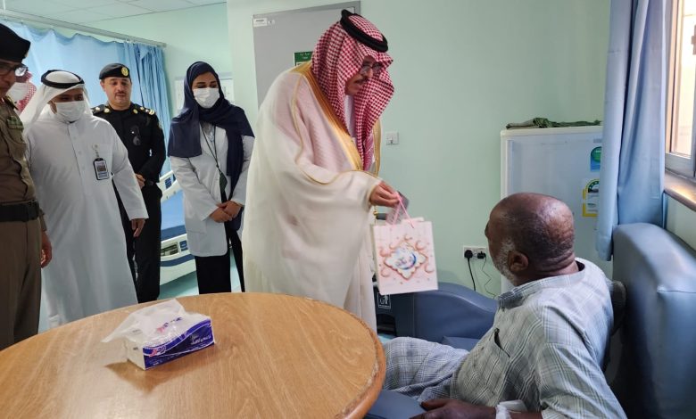 وعقب أداء الصلاة زار محافظ الجبيل رئيس لجنة أصدقاء المرضى، مستشفي الجبيل العام، للإطمئنان على المرضى المنومين، وتقديم التهنئة لهم بمناسبة عيد الفطر المبارك، سائلاً الله تعالى أن يمُنَّ عليهم بالشفاء العاجل، معرباً عن شكره لإدارة المستشفى على رعاية المرضى والوقوف على راحتهم.