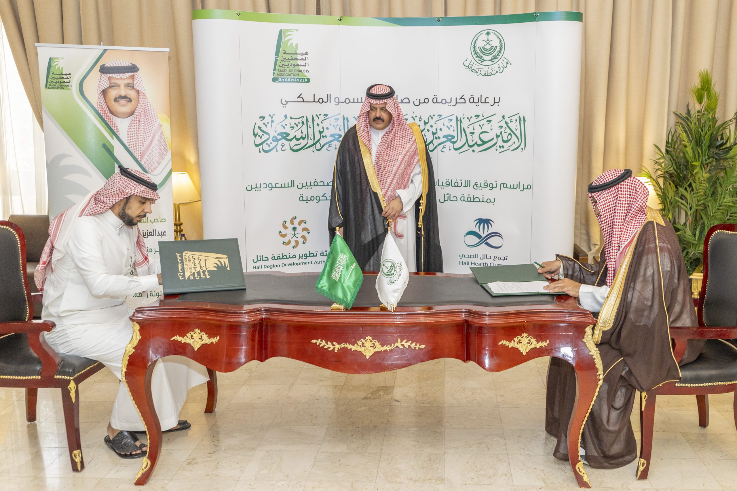 إثر ذلك شهد سموه توقيع اتفاقية الشراكة الأولى بين فرع هيئة الصحفيينبالمنطقة وهيئة تطوير منطقة حائل تضمنت التعاون المشترك في ‏تطوير البرامج والمبادرات الإعلامية في المنطقة.، وجاءت الاتفاقية الثانية معتجمع حائل الصحي وتضمنت التعاون والمشاركة في أعمال التوعيةوالتثقيف الصحي في المجتمع والمشاركة في المبادرات والأنشطةوالبرامج الصحية،بحضور ‏وكيل إمارة حائل عادل بن صالح آل الشيخ.‏