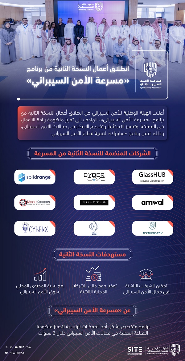 انطلاق أعمال النسخة الثانية من «مسرعة الأمن السيبراني» بمشاركة 9 شركات محلية
