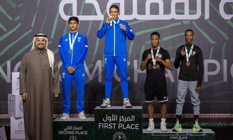 توَّج صاحب السمو الأمير فهد بن جلوي بن عبدالعزيز بن مساعد، نائب رئيس اللجنة الأولمبية والبارالمبية السعودية، أصحاب المراكز الثلاثة الأولى في فئة الكبـار لوزن 60 كجم، ضمن منافسات بطولة المملكة المفتوحة 2023، والتي نظمها الاتحاد السعودي للملاكمة التايلندية، على صالة الدفاع عن النفس، في مدينة الأمير فيصل بن فهد بن عبدالعزيز بالعاصمة الرياض، خلال الفترة من 18 إلى 20 يناير الجاري، بمشاركة أكثر من 375 ملاكماً وملاكمةً، تنافسوا في 181 فئة وزنية وعمرية.