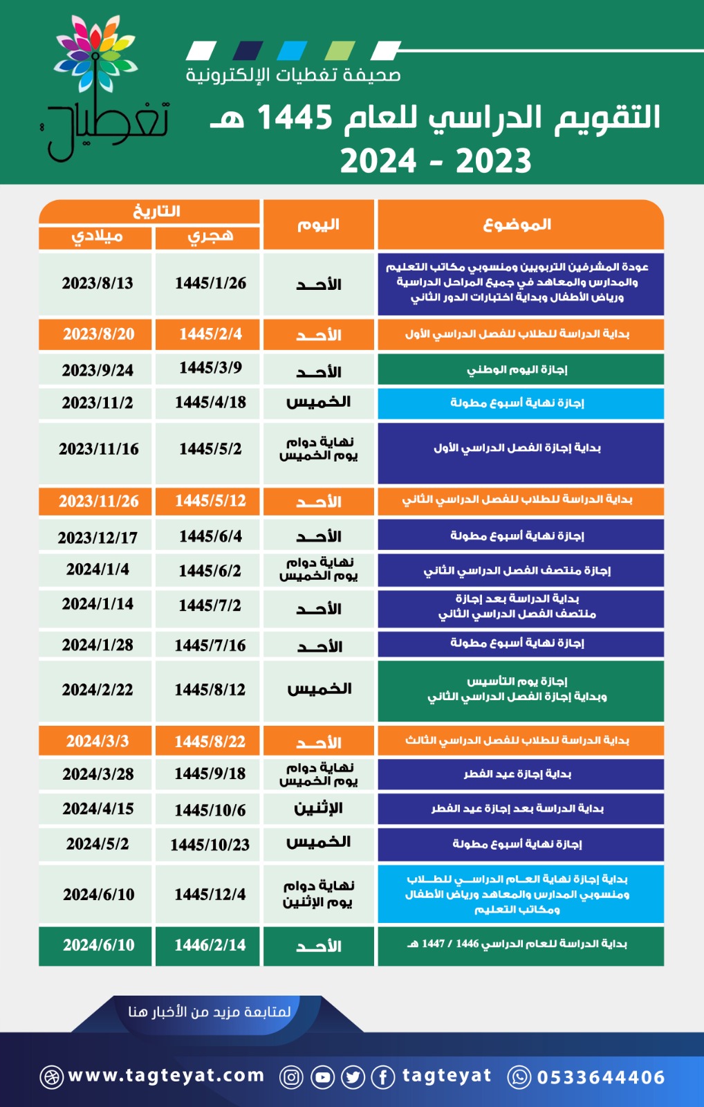 التقويم الدراسي والإجازات في الفصل الثالث