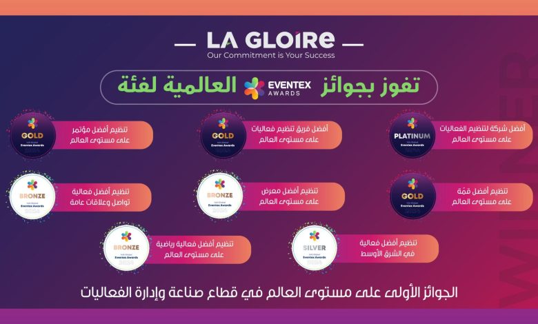 شركة زهرة المجد لإدارة وتنظيم الفعاليات”La Gloire” تحصد 8 جوائز من Eventex العالمية