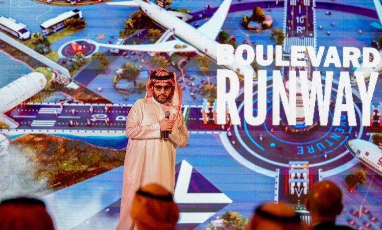 وكشف رئيس هيئة الترفيه عن تفاصيل منطقة “بوليفارد رن واي” التي تم توقيع عقد الشراكة لتنفيذها مع “الخطوط السعودية” في وقت سابق، حيث ستقام بجانب منطقة بوليفارد سيتي على مساحة 140 ألف متر مربع، وستحتضن المنطقة ثلاث طائرات عملاقة من طراز بوينغ 777 جرى تحويلها إلى محلات تجارية ومطاعم و13 تجربة تفاعلية للكبار والصغار.