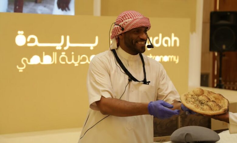 الخبز الحساوي يحظى باهتمام طهاة العالم خلال معرض المدن المبدعة في بريدة