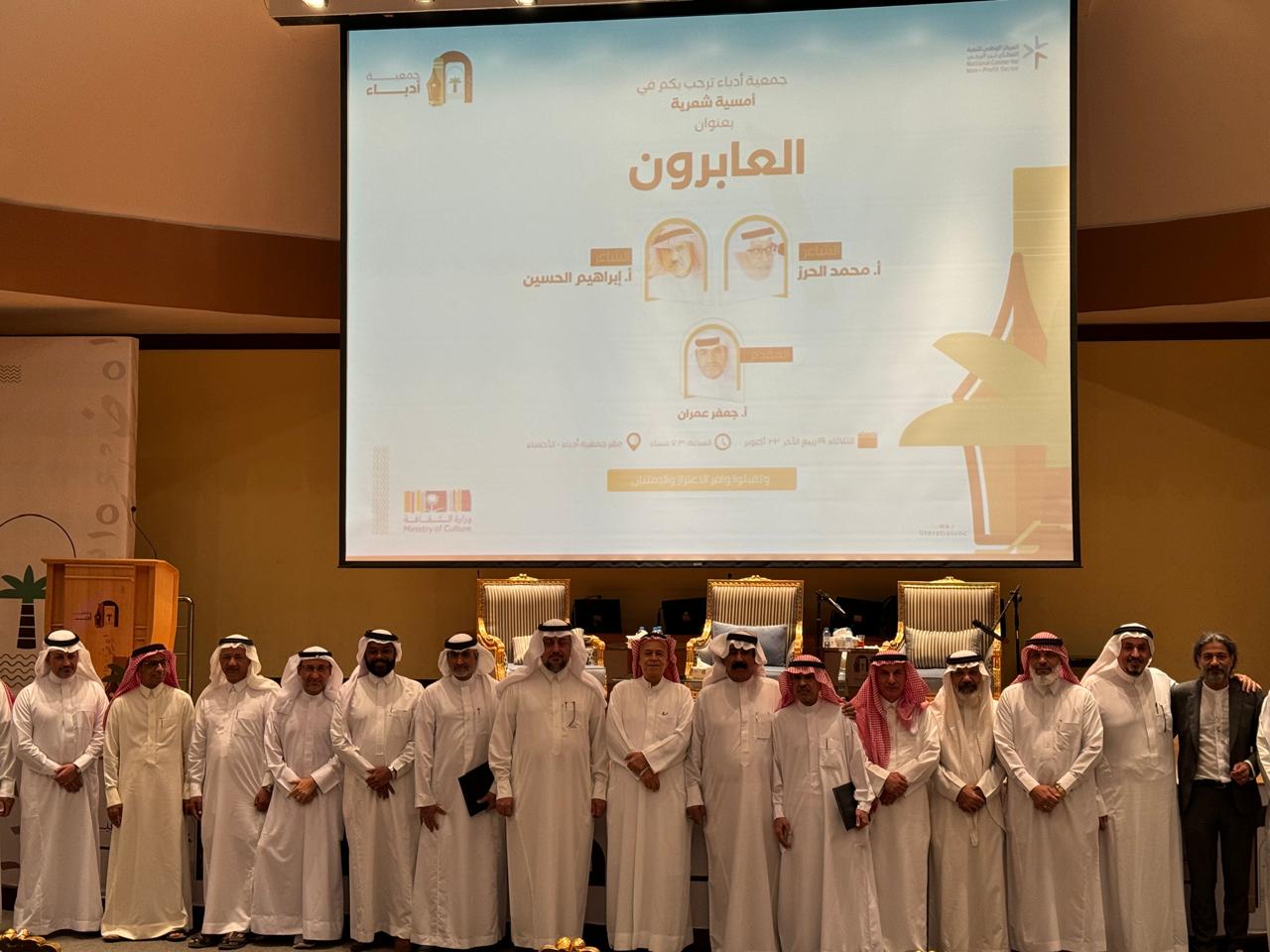 ‎نظمت جمعية أدباء في الأحساء على مسرحها أمسية شعرية لقصيدة النثر بعنوان ( العابرون )