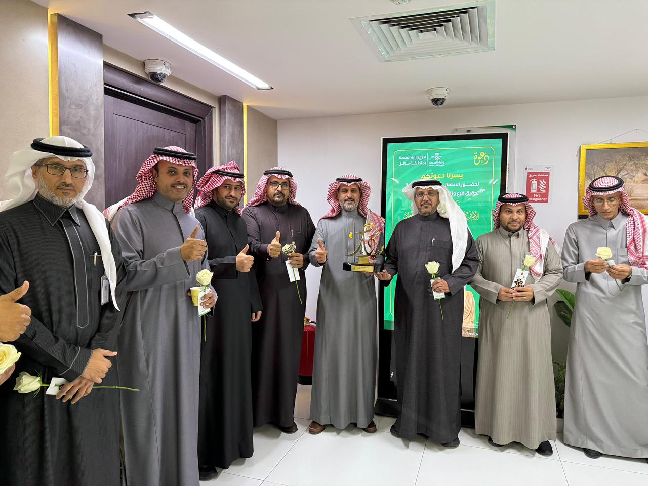 هذا وأقام فرع وزارة الصحة بمنطقة حائل اليوم، حفلاً بمناسبة هذا التتويج بحضور مدير الفرع، وعدداً من المساعدين والموظفين، وزعت خلاله باقات الورود والحلوى وسط مشاعر كبيرة من الفرح والابتهاج والفخر بمناسبة حصول صحة حائل على جائزة سمو أمير المنطقة “بصمة” .