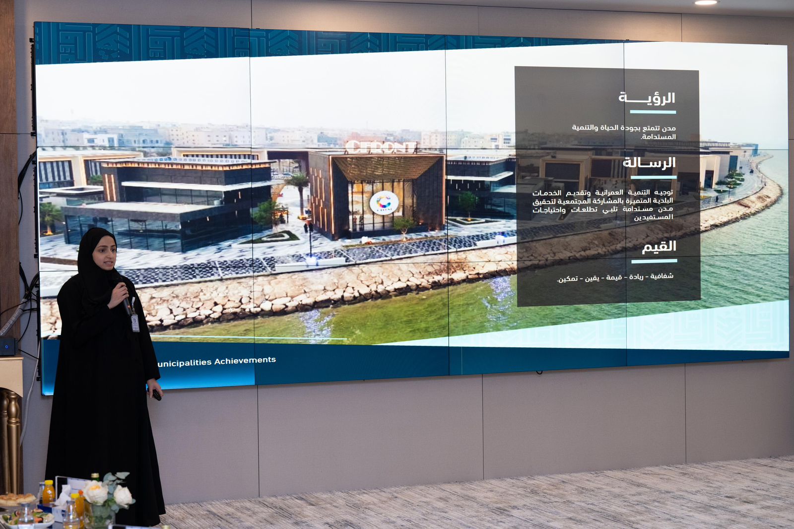 كما تم عرض المشاريع الاستثمارية النوعية، التي جاء ضمنها مشروع تطوير جزيرة جنة بمحافظة الجبيل (شراكة بالداخل)، ومشروع تطوير كورنيش رأس تنورة، وفي ذات السياق تمت الإشارة إلى المشروعات الاستثمارية بالشراكة مع القطاع الخاص، ومؤشرات تعزيز الشراكات مع القطاع الخاص في تطوير الحدائق العامة في البلديات المرتبطة.