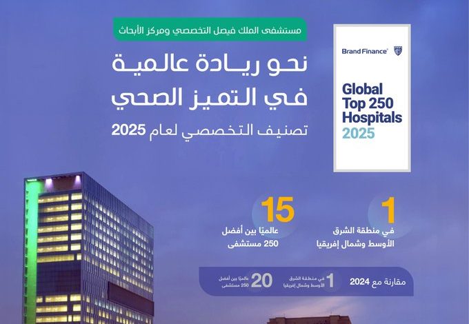 واصلت المملكة تحقيق إنجازاتها العالمية في القطاع الصحي، مدفوعة برؤية المملكة 2030، حيث تم إدراج 7 مستشفيات سعودية ضمن قائمة “براند فاينانس” لأفضل 250 مستشفى عالميًا لعام 2025، من بينها مستشفى الملك فيصل التخصصي ومركز الأبحاث في صدارة المستشفيات السعودية والإقليمية، حيث حلّ في المرتبة الـ 15 عالميًا، ليكون أفضل منشأة طبية في الشرق الأوسط وشمال أفريقيا.