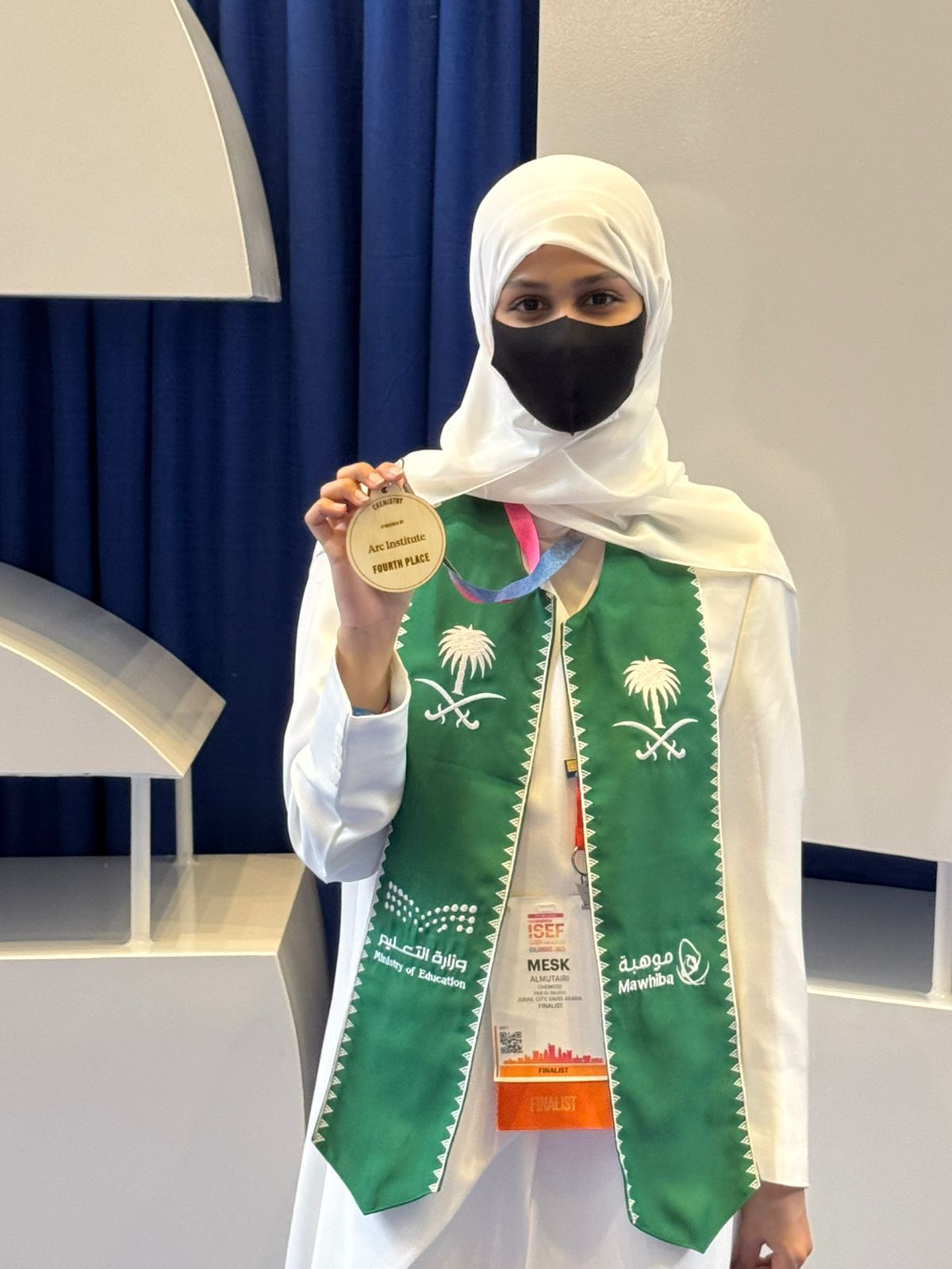فازت بـ جائزة كبرى (الثالث على مستوى العالم)، بالإضافة إلى جائزتين خاصتين ضمن الجوائز العامة للمنتخب السعودي. - مسك المطيري -مدرسة فاطمة بنت المنذر بالجبيل الصناعية