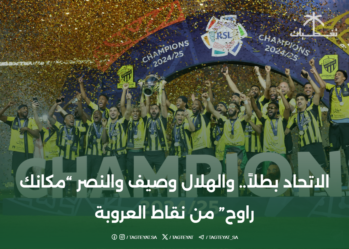 تُوِّج الأمير عبدالعزيز بن تركي الفيصل، وزير الرياضة رئيس اللجنة الأولمبية والبارالمبية السعودية، نادي الاتحاد بعد حصوله على لقب بطولة دوري روشن السعودي للمحترفين للموسم الرياضي 2024/ 2025.فريق الاتحاد الأول لكرة القدم بلقب دوري روشن السعودي للمحترفين للموسم الرياضي الحالي 2024-2025 مساء أمس الاثنين، وذلك بعد أن حسم اللقب قبل نهاية الدوري بجولتين.