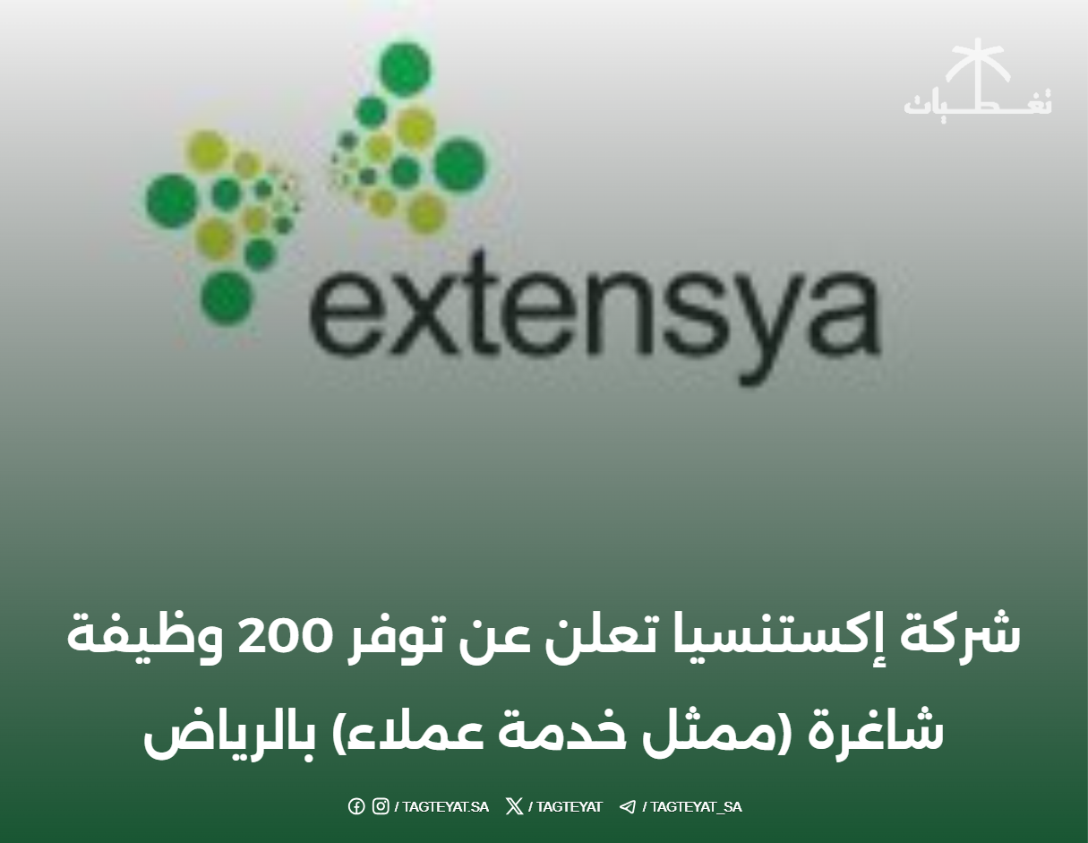 تعلن شركة إكستنسيا للدعم ومراكز الاتصال، المتخصصة في تقديم خدمات الدعم ومراكز الاتصال، عن فتح باب التقديم لنحو 200 وظيفة شاغرة في مدينة الرياض، ويمكن التقدم للوظيفة للرجال والنساء بمسمى (ممثل خدمة عملاء هاتفية)، والتفاصيل كالتالي.