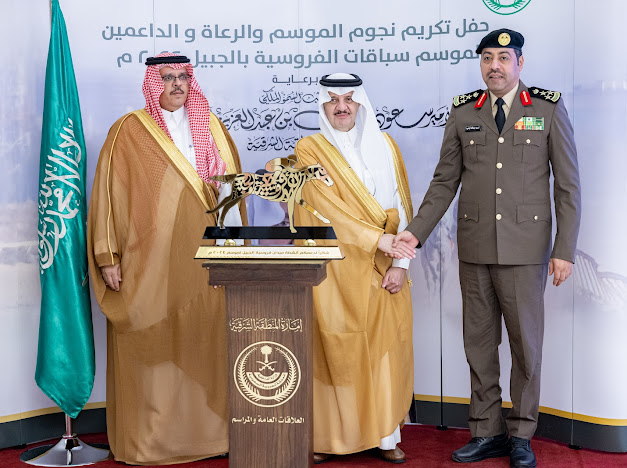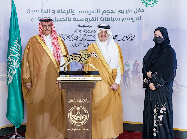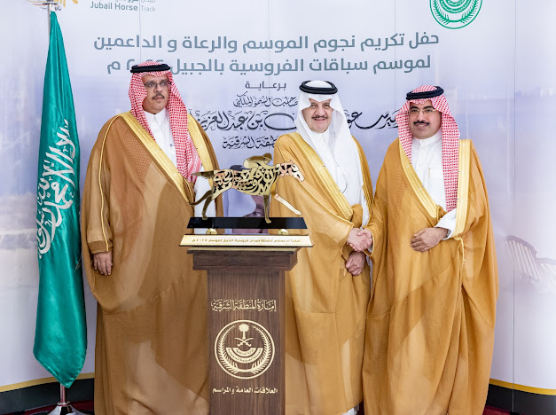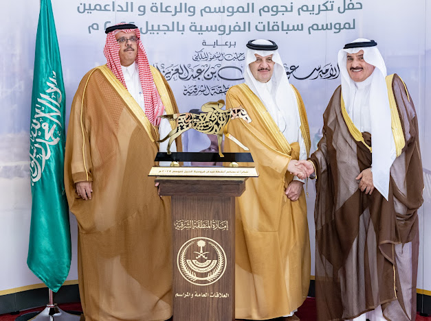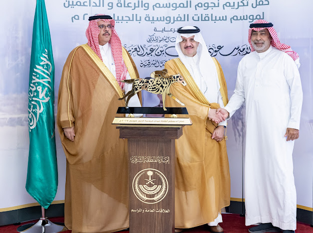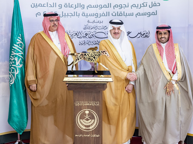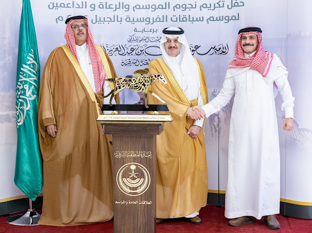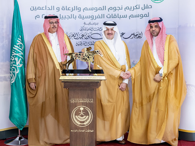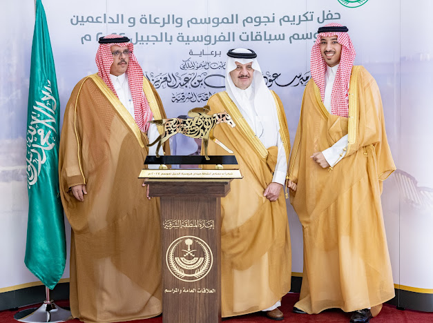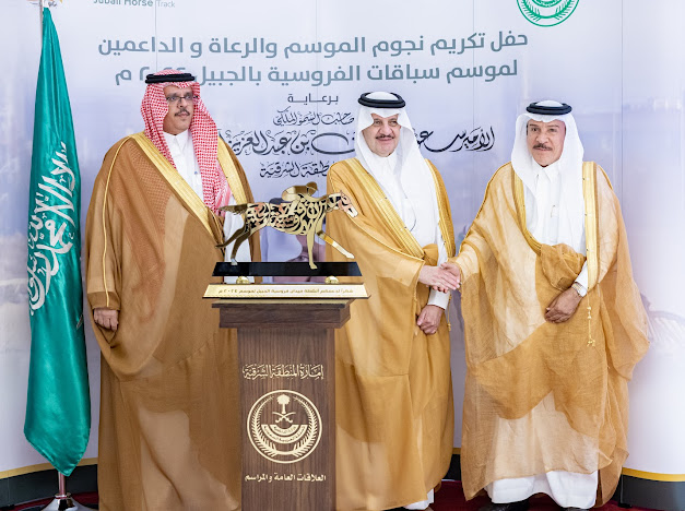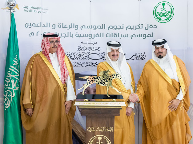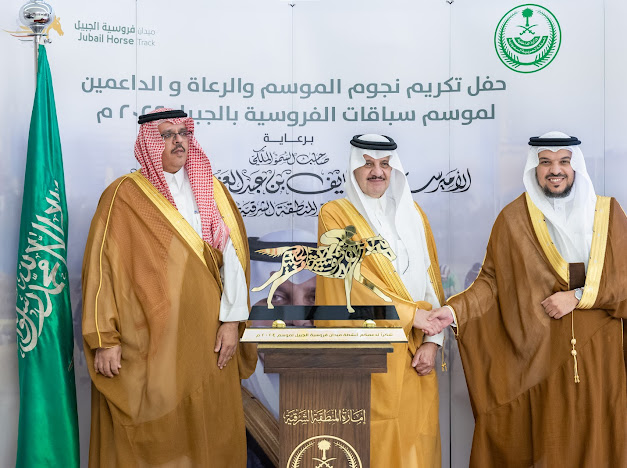 رعى صاحب السمو الملكي الأمير سعود بن نايف بن عبدالعزيز أمير المنطقة الشرقية (حفظه الله) صباح اليوم حفل ساحة الجبيل للفروسية لعام 2024م، بحضور سمو أمير الجبيل ورئيس مجلس إدارة ساحة الجبيل للفروسية وأعضاء المجلس والرعاة والداعمين، كما كرم الفائزين والداعمين.