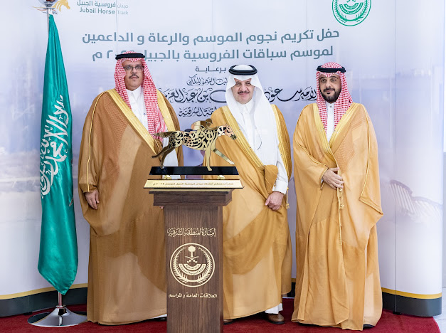وفي كلمته في الحفل، أعرب سعادة الأستاذ أحمد بن عبدالرحمن الماهر، المدير العام وعضو مجلس إدارة ساحة الجبيل للفروسية، عن عميق امتنانه وتقديره لصاحب السمو الملكي أمير المنطقة الشرقية على دعمه المتواصل ورعايته الدائمة لساحة الجبيل للفروسية، وأكد أن نجاح هذا الموسم هو ثمرة جهود مشتركة وتعاون شركاء النجاح من المؤسسات الحكومية والأهلية.