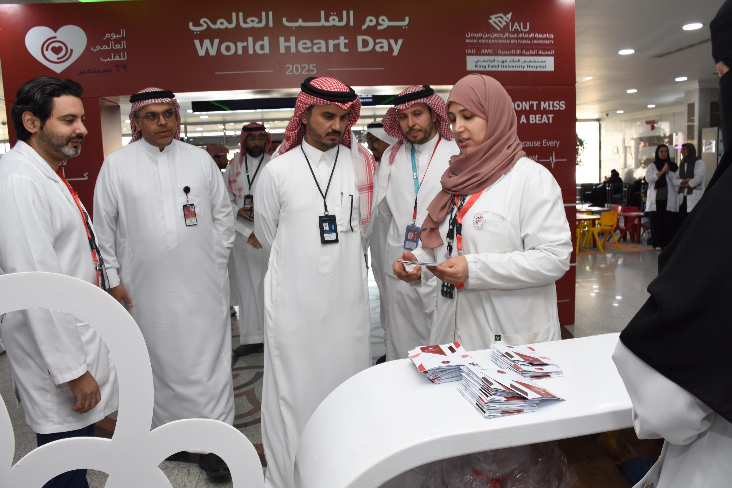 فعّل مركز القلب في مستشفى الملك فهد الجامعي بجامعة الإمام عبد الرحمن بن فيصل أمس (29 سبتمبر) فعالية توعوية بمناسبة اليوم العالمي للتوعية بمشاكل القلب، بحضور المدير التنفيذي للمستشفى الجامعي الدكتور عبدالله يوسف، وعميد كلية الطب أ.د.محمد الشهراني ، وبمشاركة عدد من الأقسام والتخصصات الطبية ذات العلاقة، وبإشراف استشارية الباطنية والقلب وكهرباء القلب د. وفاء علي الداود.