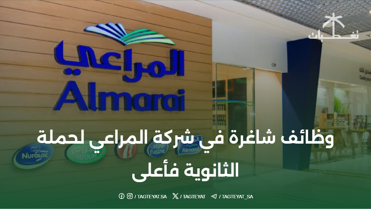 وظائف شاغرة في شركة المراعي لحملة الثانوية فأعلى