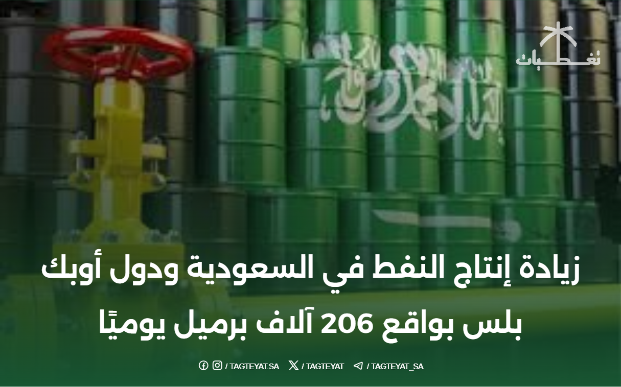 زيادة إنتاج النفط في السعودية ودول أوبك بلس بواقع 206 آلاف برميل يوميًا