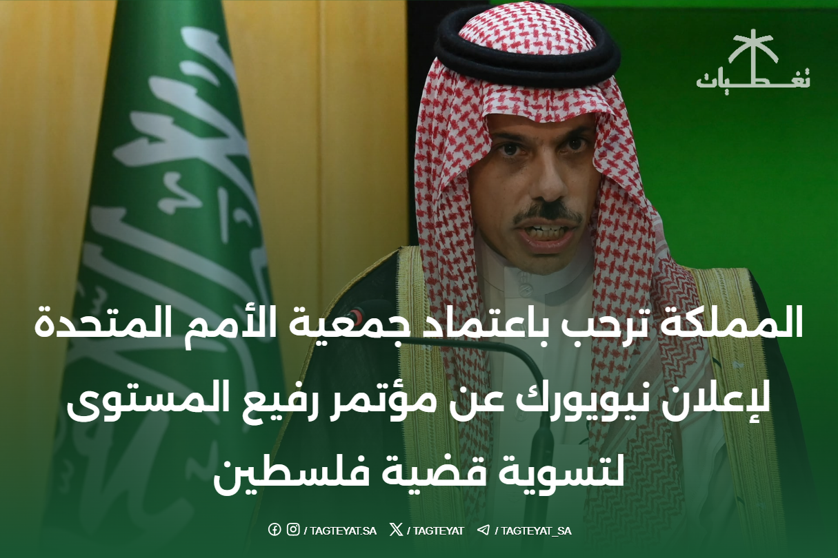المملكة ترحب باعتماد جمعية الأمم المتحدة لإعلان نيويورك عن مؤتمر رفيع المستوى لتسوية قضية فلسطين