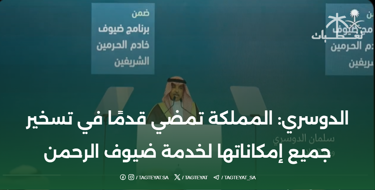 الدوسري: المملكة تمضي قدمًا في تسخير جميع إمكاناتها لخدمة ضيوف الرحمن
