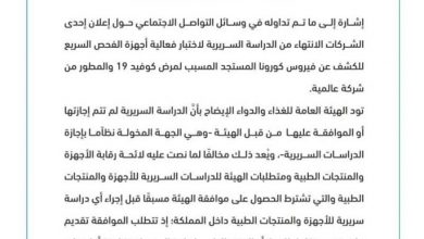 تغطيات – متابعات: أكدت الهيئة العامة للغذاء والدواء، أنّ الدراسة السريرية التي أعلنت عنها إحدى الشركات حول الانتهاء من اختبار…