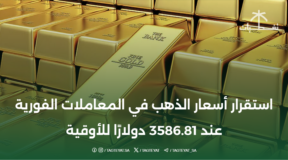 استقرار أسعار الذهب في المعاملات الفورية عند 3586.81 دولارًا للأوقية