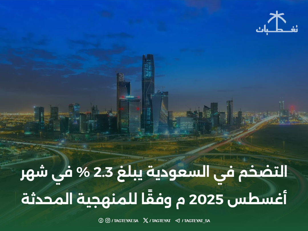 التضخم في السعودية يبلغ 2.3 % في شهر أغسطس 2025 م وفقًا للمنهجية المحدثة