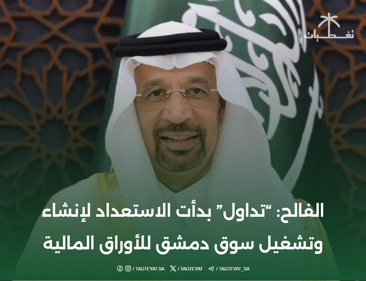 الفالح: “تداول” بدأت الاستعداد لإنشاء وتشغيل سوق دمشق للأوراق المالية