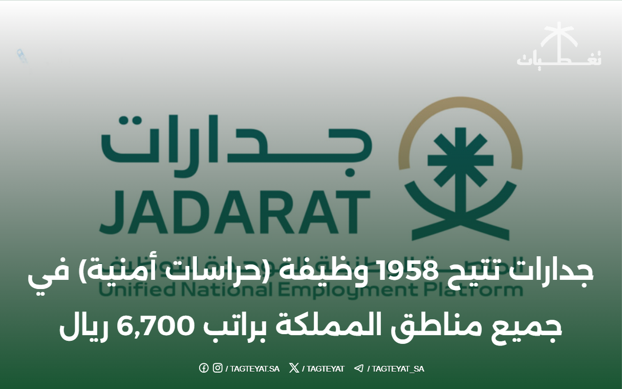 جدارات تتيح 1958 وظيفة (حراسات أمنية) في جميع مناطق المملكة براتب 6,700 ريال