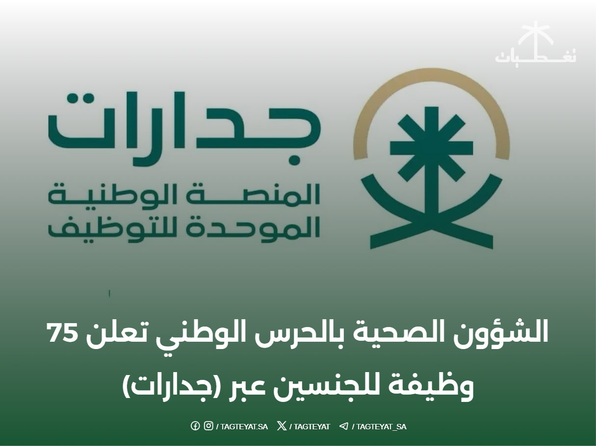 الشؤون الصحية بالحرس الوطني تعلن 75 وظيفة للجنسين عبر (جدارات)