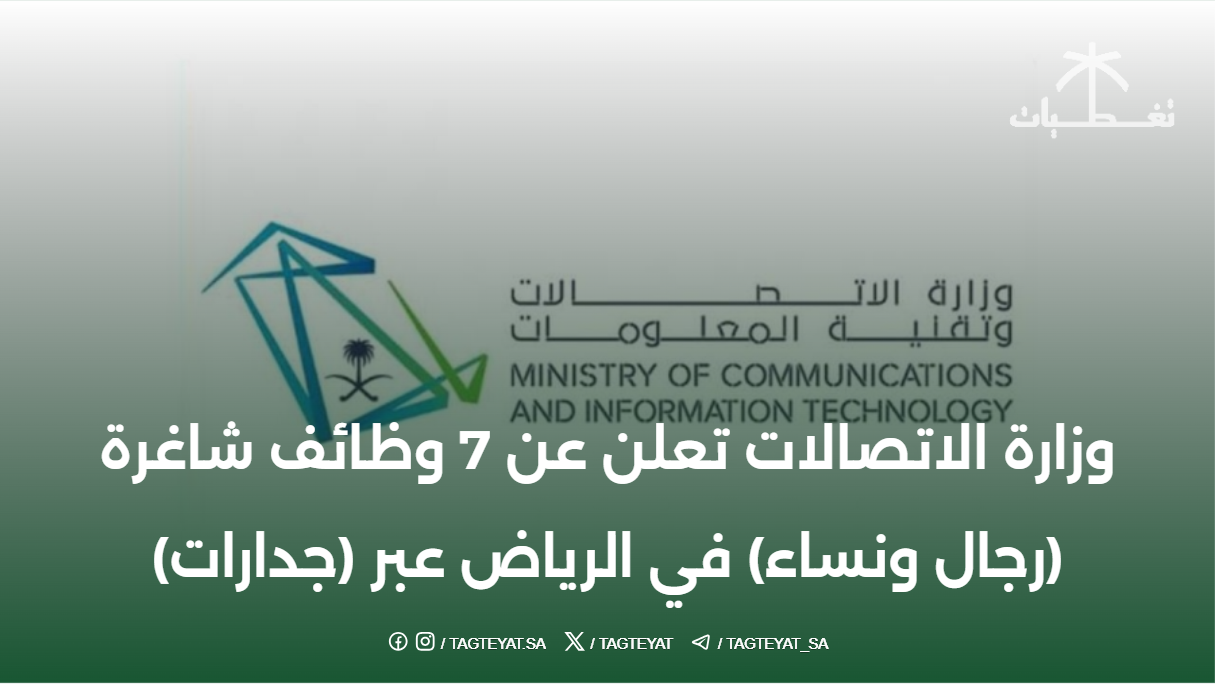 وزارة الاتصالات تعلن عن 7 وظائف شاغرة (رجال ونساء) في الرياض عبر (جدارات)