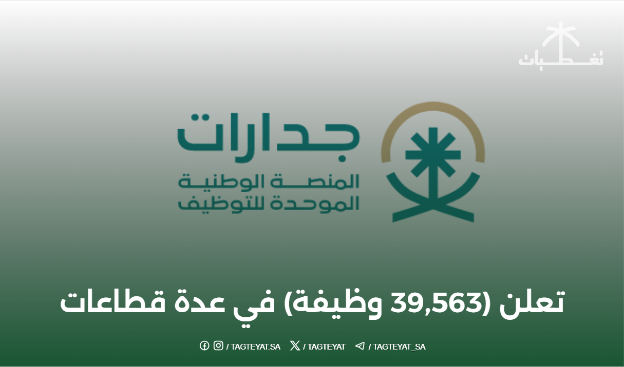المنصة الوطنية الموحدة للتوظيف #جدارات تعلن (39,563 #وظيفة ) في عدة قطاعات